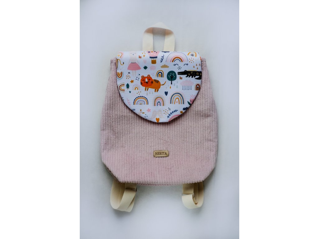 Originální batůžek pro děti s hravým motivem. Každý z nich je originál. Uvnitř batohu je jedna velká kapsa bez dalších přihrádek. Zapínání na druk.